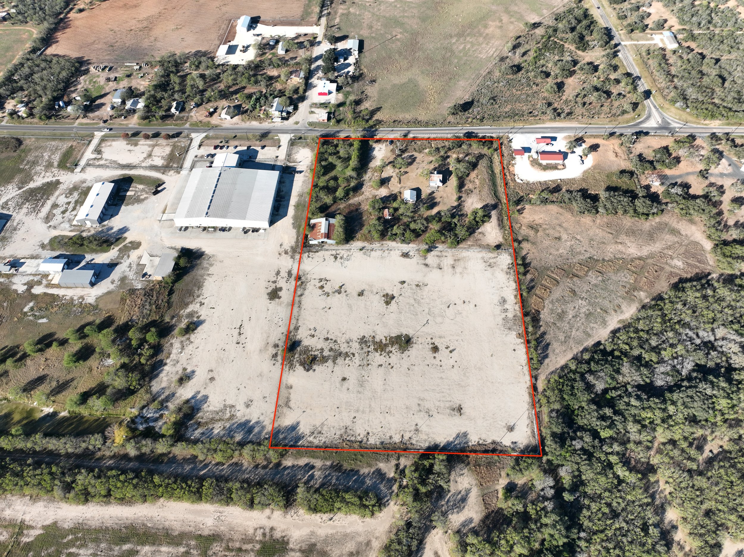 Commercial/residential property located in the heart of Yancey. Situated between Hwy 90 and SH 35, this mixed use property is the perfect place to start a business, move a business or make a homestead. Anchored on two sides by thriving businesses, this 13.31 acre property has a lot to offer. The front +/- 6 acres is fenced and cross fenced and full of buffel grass to sustain a variety of livestock. Situated on the front 3 acres is a two story hardie boarded home or office structure that is approximately 2250 sq ft. Although it does need some love, this structure could easily be remodeled to fit many needs. Adjacent to that building is a 3 car garage with efficiency room in the back and a cellar. On the opposite corner of the front 6 acres is a 4800 square foot open air barn. With tall ceilings and a concrete slab, this barn could be easily retrofitted to house a business or be used for livestock or ag purposes. The back 7 acres is a stabilized base lot surrounded by a chain link security fence. On the exterior fence line and up the middle, 9 industrial light light poles with area lights are poised and ready to illuminate the whole area for added security. This area would be perfect for a storage area, truck yard, industrial area, etc.